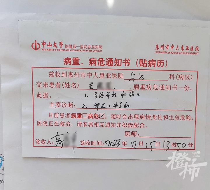 黄女士在医院抢救时,院方下达了危重通知书。目前,治疗费已经付了两万多,还欠了医院三万多元,现在还面临着后续康复治疗费用。