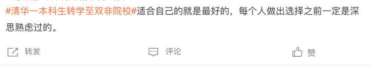 在社交平台上,#清华一本科生转学至双非院校#话题迅速冲上热搜后,记者翻了翻网友的评论,发现虽然有些网友表示不理解,但更多网友的看法是表达认同和理解。
