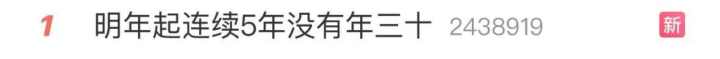 今天,#明年起连续5年没有年三十#冲上了微博热搜。