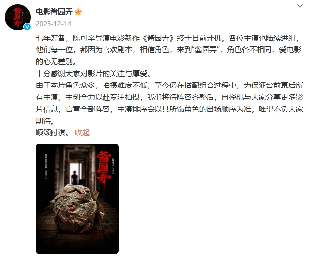 电影《酱园弄》官方微博截图
