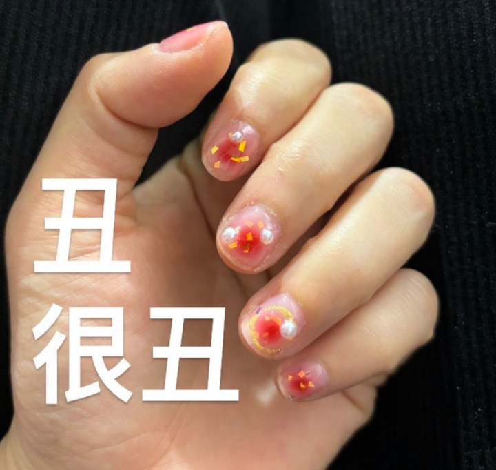 网友@饱饱醒醒o 晒出了她最近刚做的美(丑)甲:丑甲,塑料感的丑甲↓