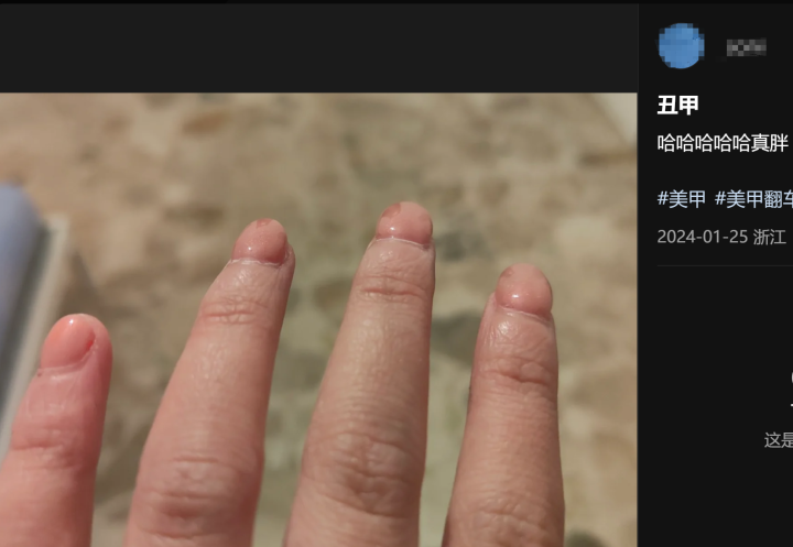 还有网友比较担忧美甲对指甲造成的损伤。杭州曾有一个穿搭博主美甲后指甲泛绿光……