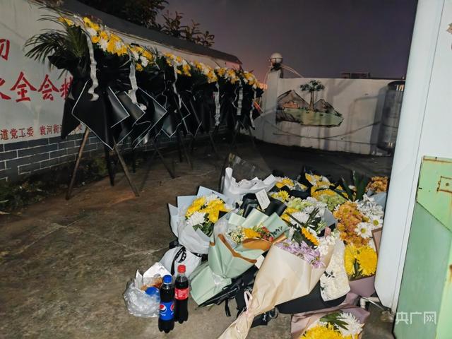 记者跟随过来发现,空地角落已经摆放了一排花篮,花篮的白色缎带上写着“逝者安息 生者坚强”。