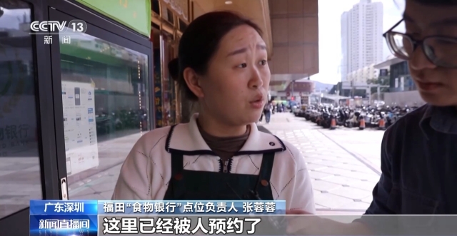 福田“食物银行”点位负责人 张蓉蓉:刚刚已经上了10份之后,这里已经被人预约了,现在剩余八份,已经被预约过两份了,他们会在三个小时之内到这里来领取。