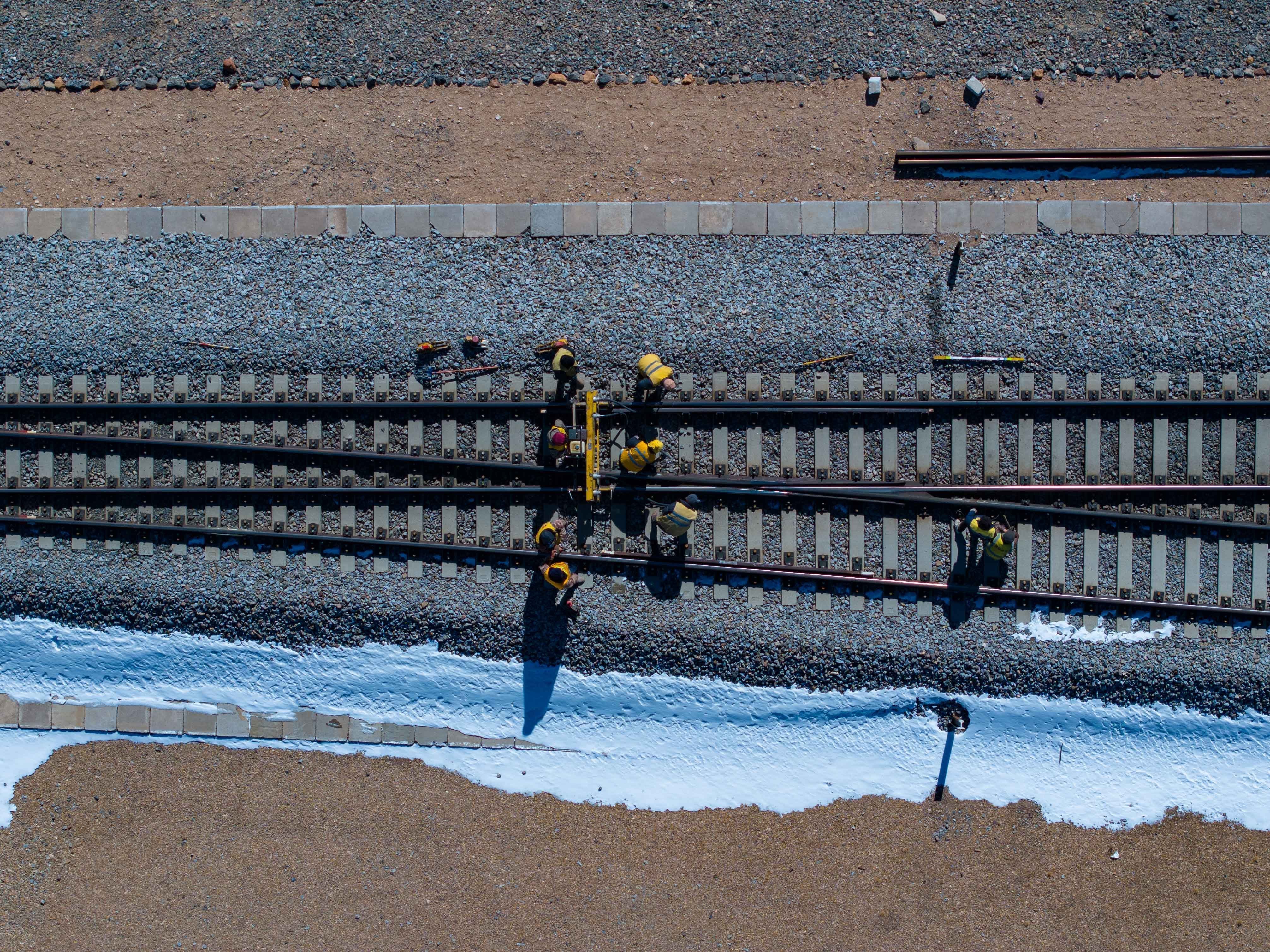 他带着工人们迅速出动,抵达现场时已经是过了12点。这时天窗邻近,他们迅速做好准备,第一时间冲到铁轨上施工。黑夜里,几个微小的灯光在茫茫荒野上晃动,隐约区分出铁路的轨迹。