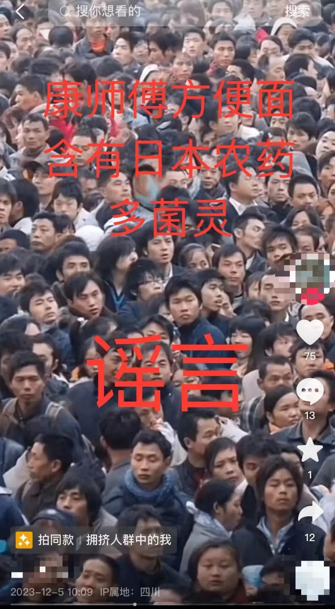 近日,网民王某某在某短视频平台发布“康师傅方便面含有日本农药多菌灵,可以导致脑麻痹、肿瘤等癌症。包括目前正在销售的康师傅的矿泉水、果粒橙、冰红茶、可乐等康师傅一系列产品,都含有多菌灵”的网络谣言,造成不良社会影响。大英县公安局已依法对王某某处以行政处罚。