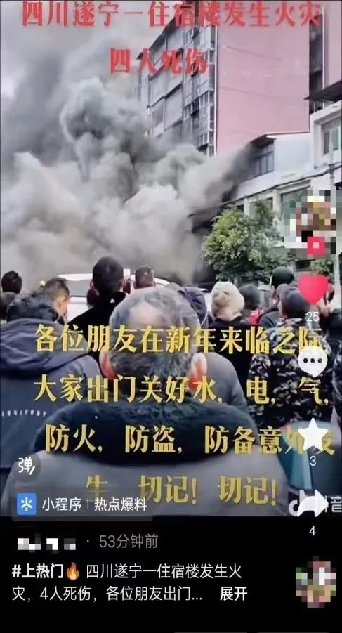 近日,网民曹某某在某短视频平台发布“遂宁一住户家中发生火灾,4人死伤”的网络谣言,造成不良社会影响。船山公安分局已依法对曹某某处以行政处罚。