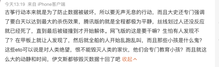 比如原著的名场面古筝行动就受到了不少争议,有网友将其和腾讯版放在一起做对比,不管是氛围还是特效,都远不如腾讯版震撼,这特效像极了“我学了三年动画的朋友”做的,也不知道这1.6亿美元都花哪了。