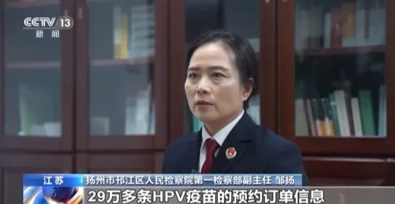 江苏省扬州市邗江区人民检察院第一检察部副主任 邹扬:几个月的时间,他们一共获取了全国范围内的29万多条HPV疫苗的预约订单信息、客服聊本以及一些短信群发平台的账户。