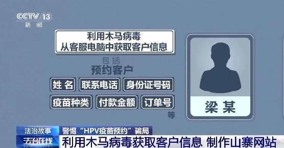 江苏省扬州市邗江区人民检察院第一检察部副主任 邹扬:他们了解到不少女性都有接种需求,二人在充分了解市场行情之后,共同出资在互联网黑灰产业平台购买了木马程序,并由梁某向正规预约网站的客服发送木马程序。