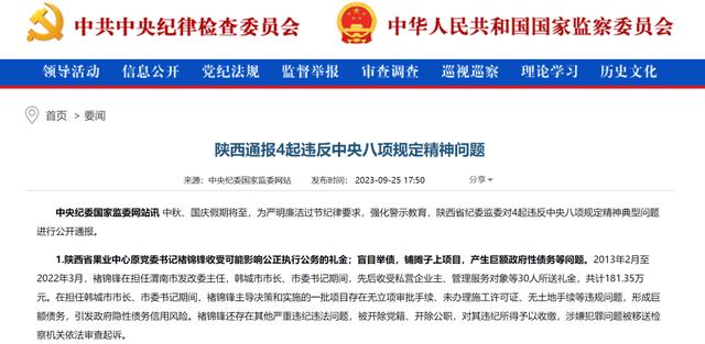 今年4月初,陕西省纪委监委发文披露称,褚锦锋不顾当地财政实际承载能力,严重脱离发展实际,短期内盲目举债,铺摊子、上项目,给当地留下极其沉重的包袱。