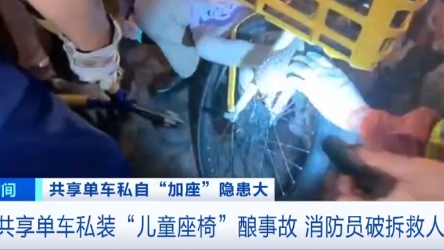 共享单车私装“儿童座椅”酿事故 消防员破拆救人