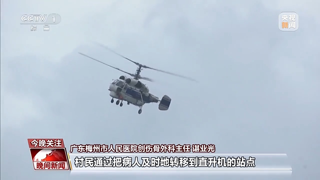 梅州市人民医院创伤骨外科主任 谌业光:村民通过把病人及时地转移到直升机的站点,就近救治。救治后再及时转到上一级医院,整个流程是非常顺畅的,对我们患者的救治是非常有帮助的。