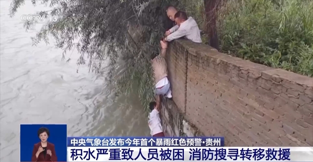 贵州:积水严重致人员被困 消防搜寻转移救援