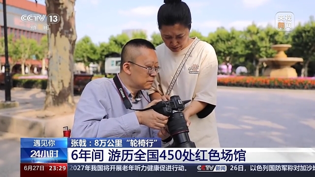 他名叫张戟,今年55岁,身患腓骨肌萎缩症。在过去6年间,张戟坐着轮椅,在家人的陪护下,游历了全国450处红色场馆和革命纪念地,总行程82000余公里。病痛中,张戟依旧积极面对生活,读万卷书、行万里路,过着他的“自由”人生。