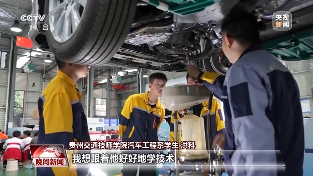 贵州交通技师学院汽车工程系学生 洪科:可能也是因为他跟我们的年龄也差不多。我想跟着他好好地学技术,以后出去了找一份好工作,让爸爸妈妈亲戚朋友都给我竖大拇指。