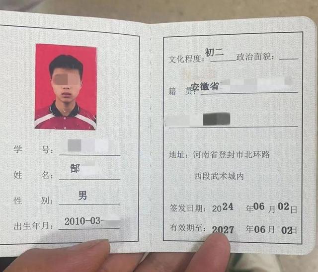 郜诚说,小哲出生于2010年3月,年仅14岁。今年2月15日,原来在安徽蚌埠某中学就读的小哲转学到登封市嵩山少林塔沟武术学校。