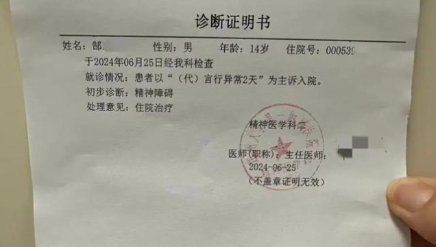 据郜诚的描述,小哲满身都是淤青,前面是老伤,后面是新伤,脸上、脖子处也有明显的掐痕。“我问他话,他说‘你是谁啊’‘我不知道我叫什么名字’。”医院的诊断证明更是显示小哲患上了“精神障碍”。