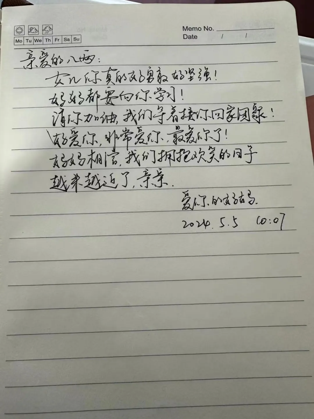 在宝宝抢救、治疗的这段时间,陈女士一直在社交平台上记录并分享着孩子病情进展,给女儿手写的几封手写信一度看哭网友。