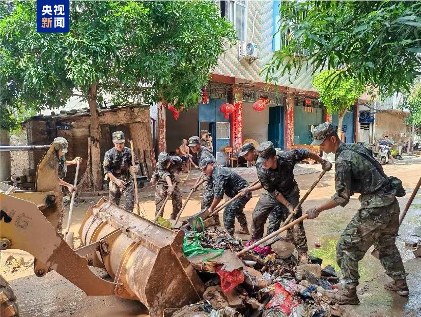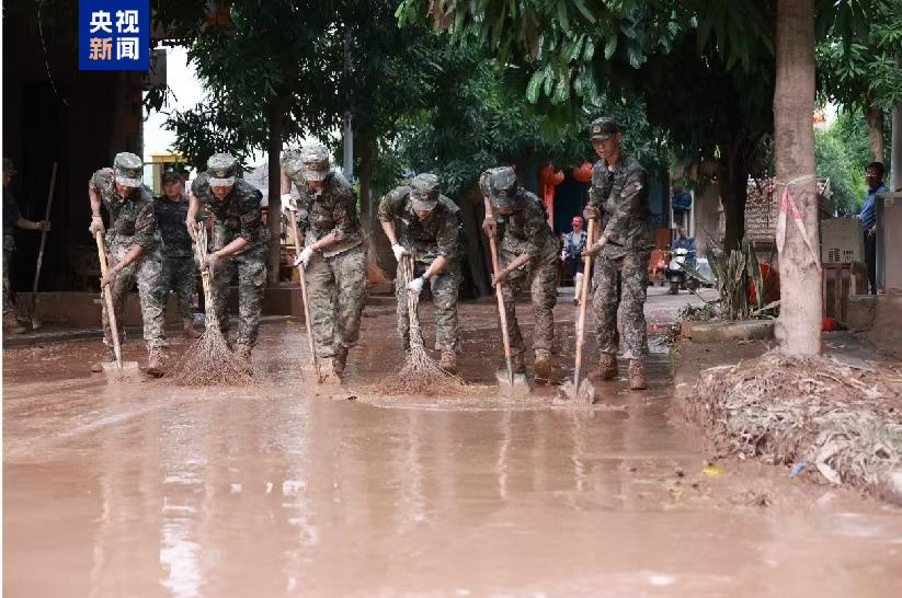 武警广西总队崇左支队出动20余名兵力,与洪水搏斗后又投入与泥泞的战斗中。9月12日12时44分,武警官兵到达宁明县城中镇驮龙村后,根据灾区现场情况,分为两个救援小组,一组负责转运受灾物资,另一组负责清理街道内的淤泥和垃圾,全力帮助群众恢复生活秩序。