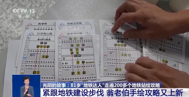 2012年,翁老伯发现不少老人不知道如何乘坐地铁。于是,他开始编写地铁出行攻略,方便和他一样的老年人。十多年里,他跑遍苏州至上海的200多个站点,绘制了多个版本的“地铁出行攻略”,并免费和大家分享。