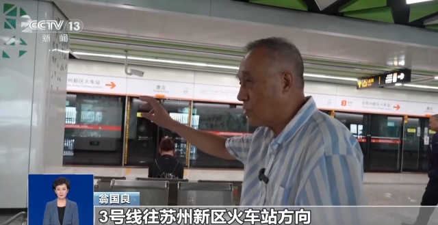翁国良:现在我们站的位置是3号线往苏州新区火车站方向和8号线往车坊方向的一个站台。这两个方向换乘的时候,它是同台的,到对面去互相就可以换乘了。