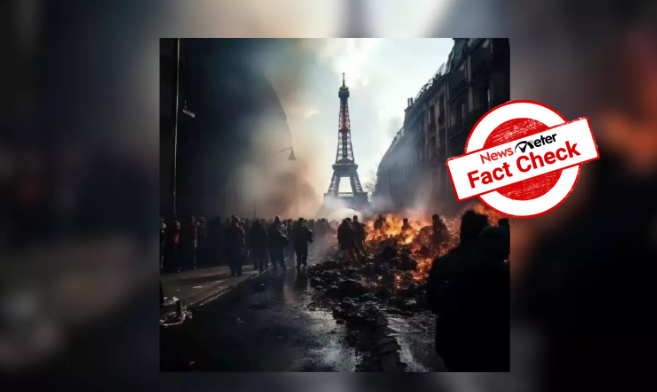 2023年7月,一张图片在社交媒体上被疯传。图片显示埃菲尔铁塔附近街道一片混乱,浓烟弥漫。有网友分享照片并配文说,过去几天在法国目睹了前所未有的暴力事件。