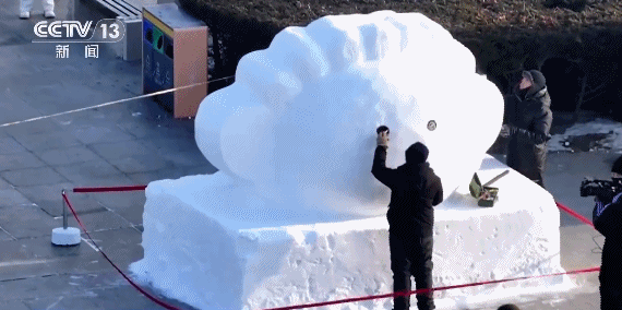 整个施工过程最难的是确保操作的准确性。雕刻雪人没有容错率,它没有任何参照物,全部靠工匠用肉眼比对,来确保合理的比例关系。