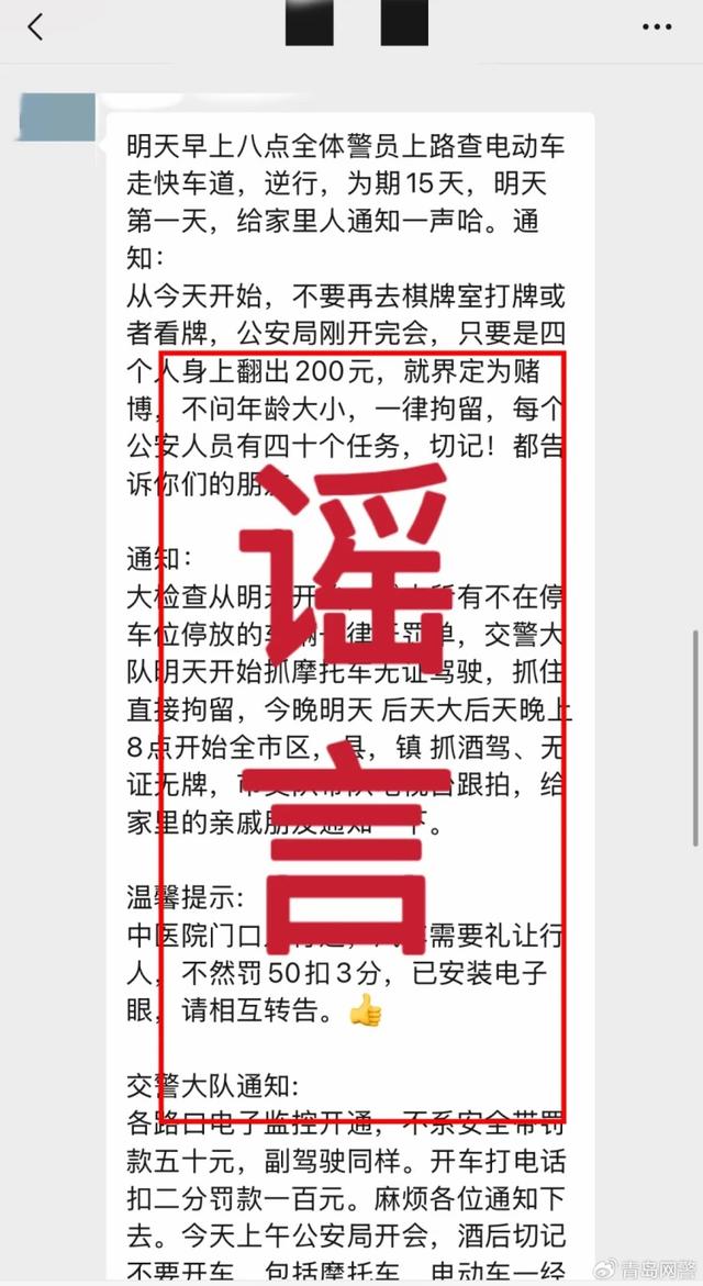 互联网联合辟谣平台消息 据@青岛网警 消息,近日,一则“交警全城大检查”的消息,在社交媒体上传播,引起网民关注和讨论。