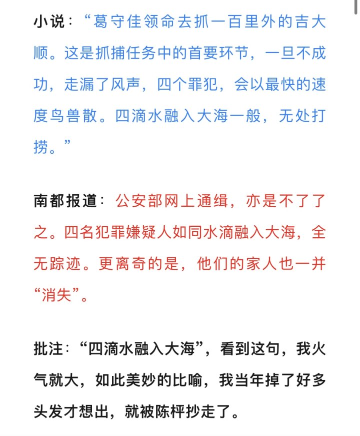 对于陈枰的回应,今天下午王猛再次发文《实锤!爱奇艺〈漂白〉》抄袭!!》,并晒出调色盘,“还可以负责说:正是全书精华的第四和第五两部分,大段大段抄袭南方都市报的报道,也就是圈内所谓的‘洗稿’,更令人发指的是,一些表述甚至一模一样。”