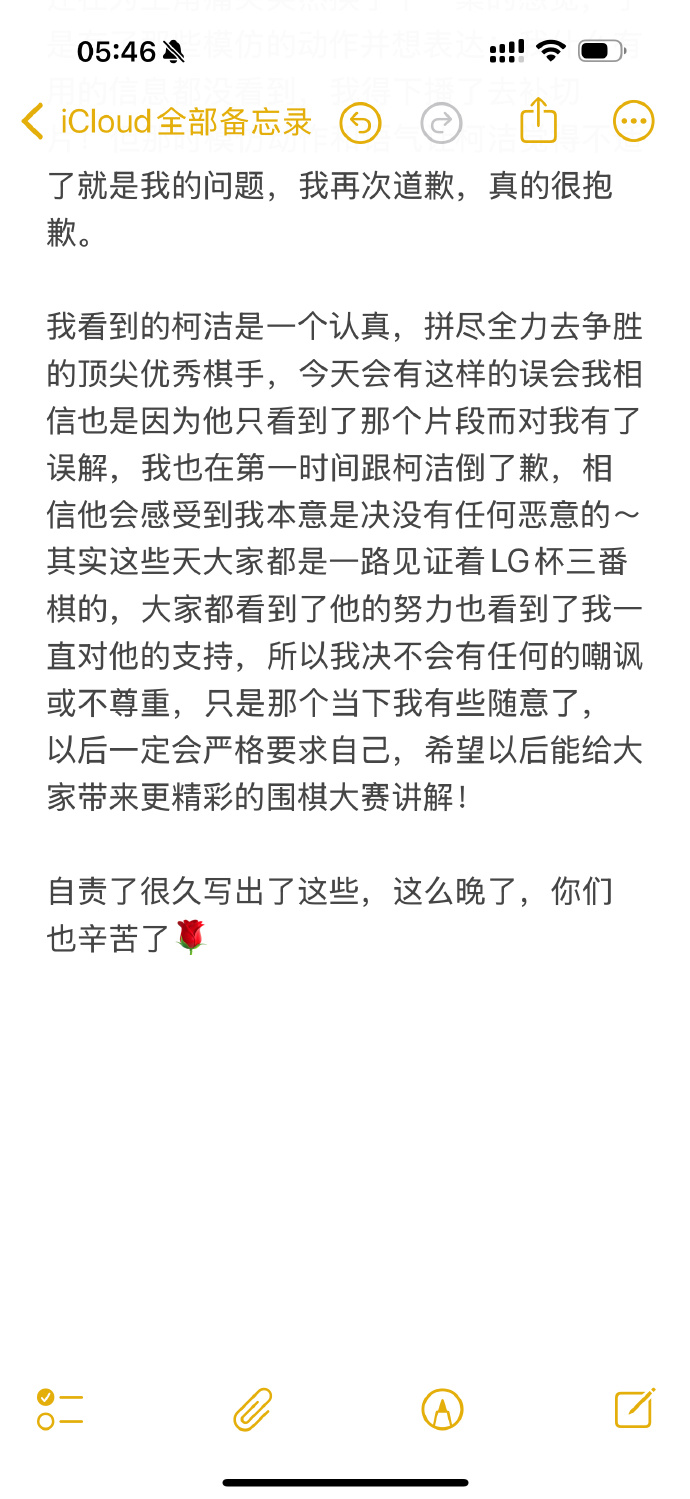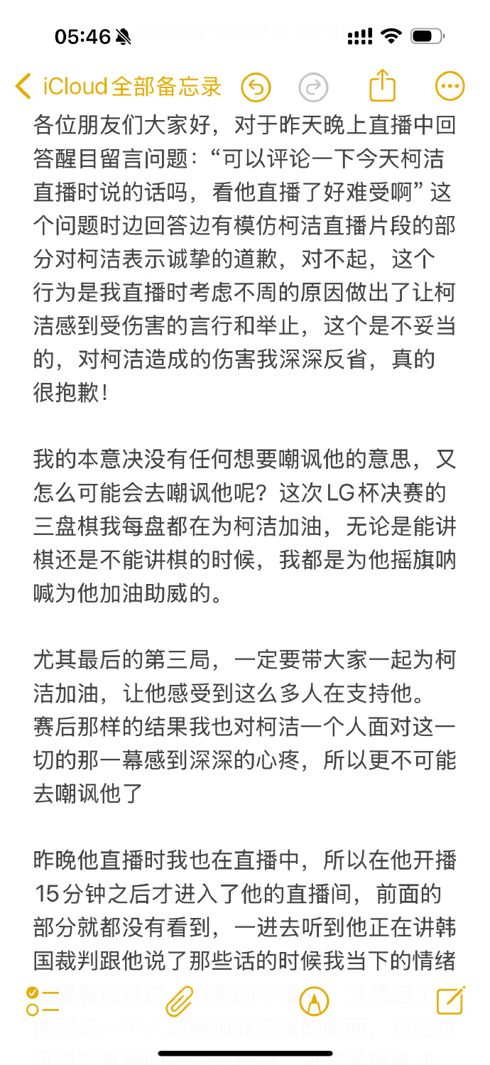 此前,1月26日,柯洁在直播中哽咽回应称:柯洁永不妥协!