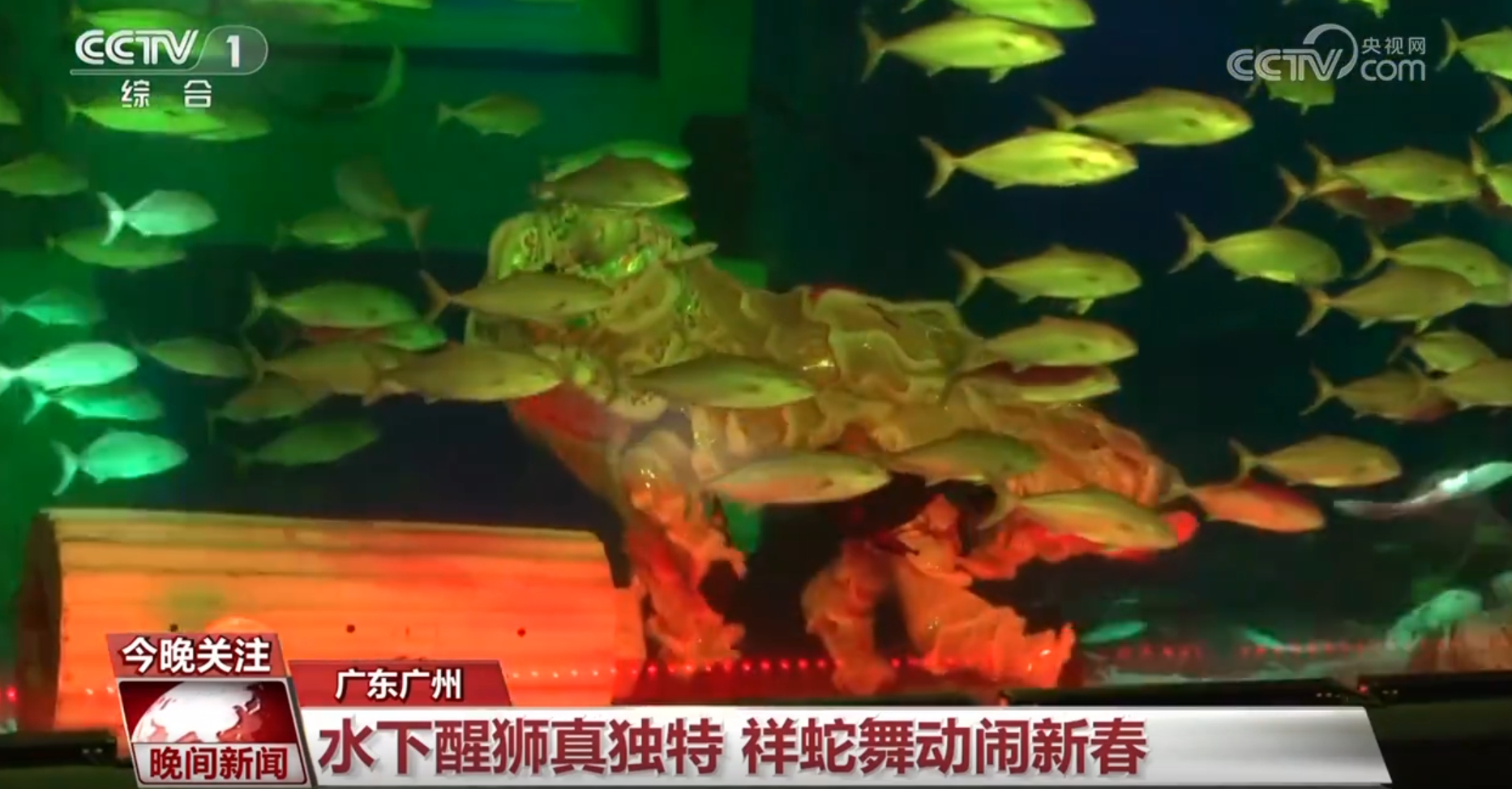 广东广州的海洋世界公园则精心编排了水下舞狮表演。见两名潜水员手举醒狮的狮头和狮身,缓缓在水下游动。其他演员则扮演起舞的祥蛇,伴随音乐变换队形,祥蛇与醒狮在水下的独特互动,让游客们惊叹不已。
