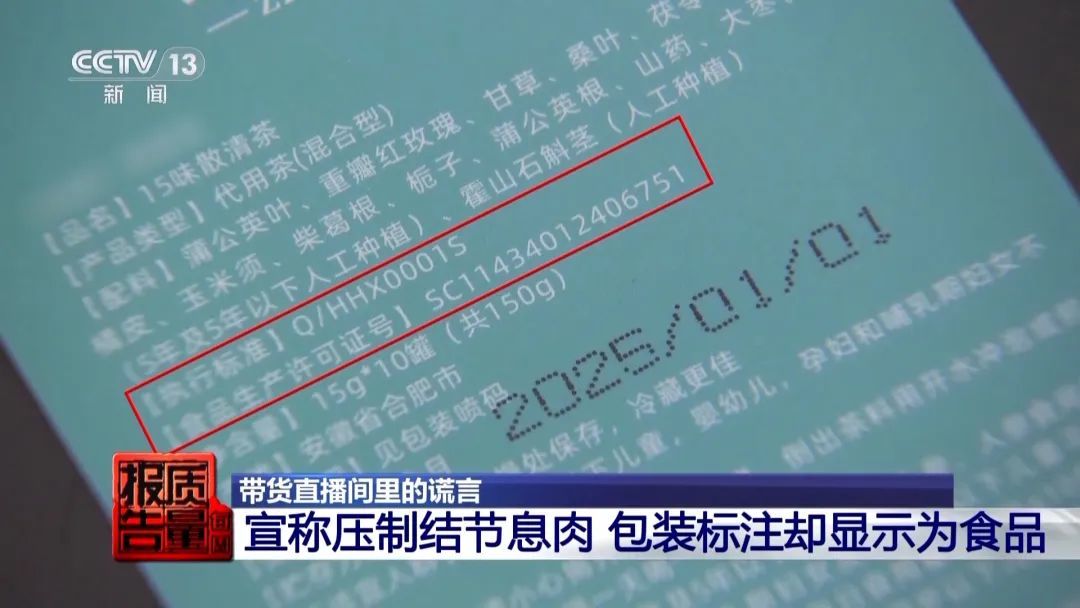 什么样的产品会有所谓“震撼”的效果呢?记者下单购买了直播间推销的这款产品。记者注意到,产品包装上的执行标准,是一种食品标准。包装上明示的食品生产许可证号,表明该产品属于食品。