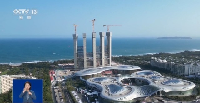 三亚市公安局海棠分局藤桥派出所民警 孙文鹏:图片中的五根柱子是两家企业合资的一个酒店,现在这五根柱子相当于建设了三分之二的进程,酒店目前还没有正式开业。