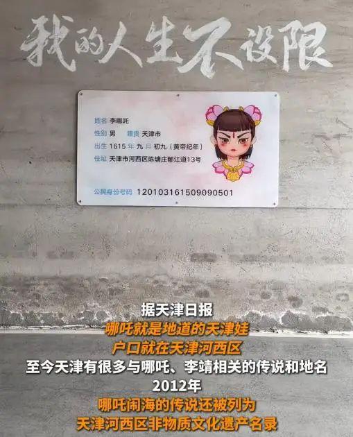 “陈塘关就在天津,哪吒是河西陈塘庄人”、“哪吒小镇里印着120103开头(天津市河西区)的哪吒身份证”、“影片中做藕粉的大叔、阿姨和章鱼将军等角色一口地道的天津话,且为这几个角色配音的演员龚格尔是天津籍电影人”。