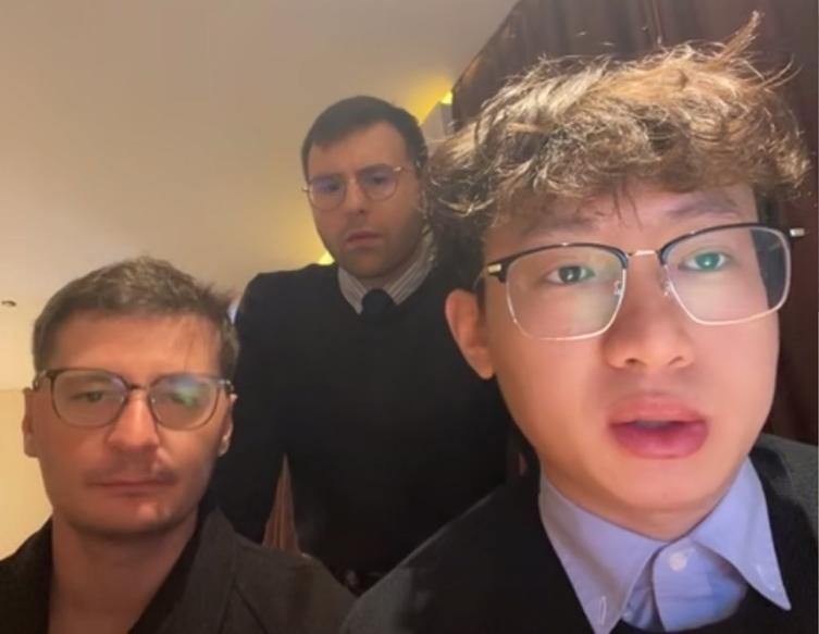 马库斯(中)和朋友松松(右一)、士杰(左一)。视频连线截图