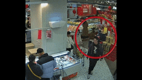 接警后,民警立即对现场监控进行排查,很快发现了端倪:一名女子在超市左顾右盼一番后,将牛肉、酒水及水果等物品放入了购物车,随后大摇大摆推着车出了超市。