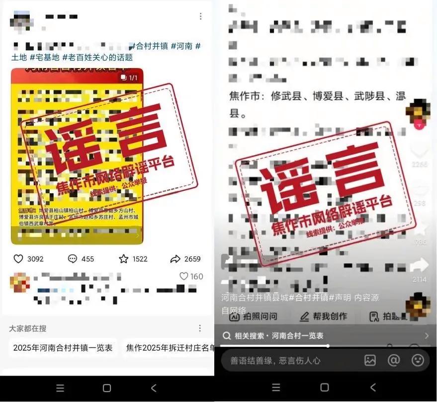 网信焦作消息 近日,焦作市网信办接群众举报,多个平台账号发布不同版本河南合村并镇名单,相关信息中涉及焦作的沁阳市、孟州市、博爱县、温县、修武县、武陟县。经核实,确认这些信息系虚假不实信息。其中,某平台个人账号发布信息称“河南焦作合村并镇补偿太低”,严重误导网民,焦作市网信办已责令账号主办者删除相关信息。