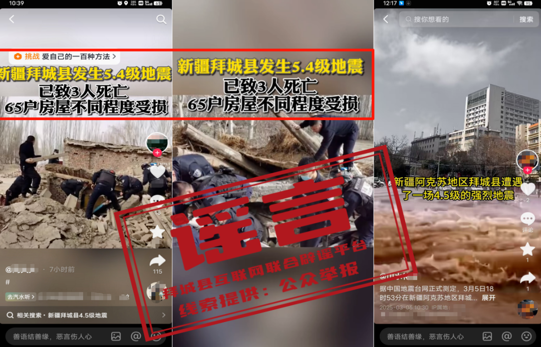 随着AI技术普及,一些网民利用AI生成逼真的地震灾害图片或视频,极具迷惑性,让不明真相的民众信以为真。