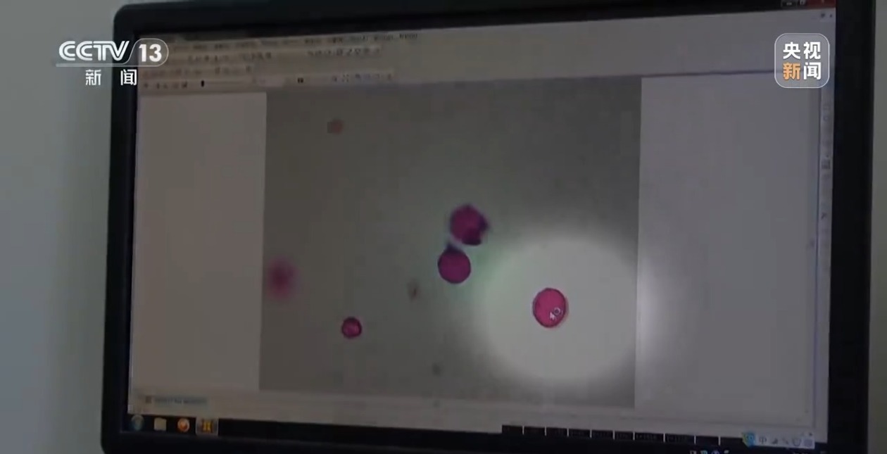 显微镜下我们看到,红色圆形中有不规则图形或是中心颗粒状是柏科花粉。监测结果显示,近期捕捉到的众多花粉过敏原中,柏科花粉数量较多。天坛公园视频里云雾缭绕的花粉,让网友直呼隔着屏幕都感觉“不能呼吸”。