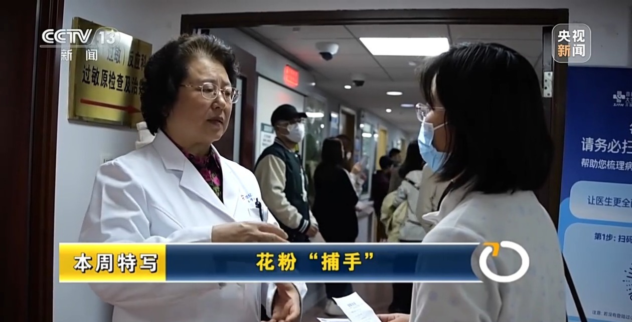 北京世纪坛医院变态反应中心主任 王学艳:我们看病不能单凭临床症状,临床症状是一方面,我还要结合花粉浓度的变化,可以给病人提醒什么时间开始停药,什么时间可以预防,这是一个非常好的措施。