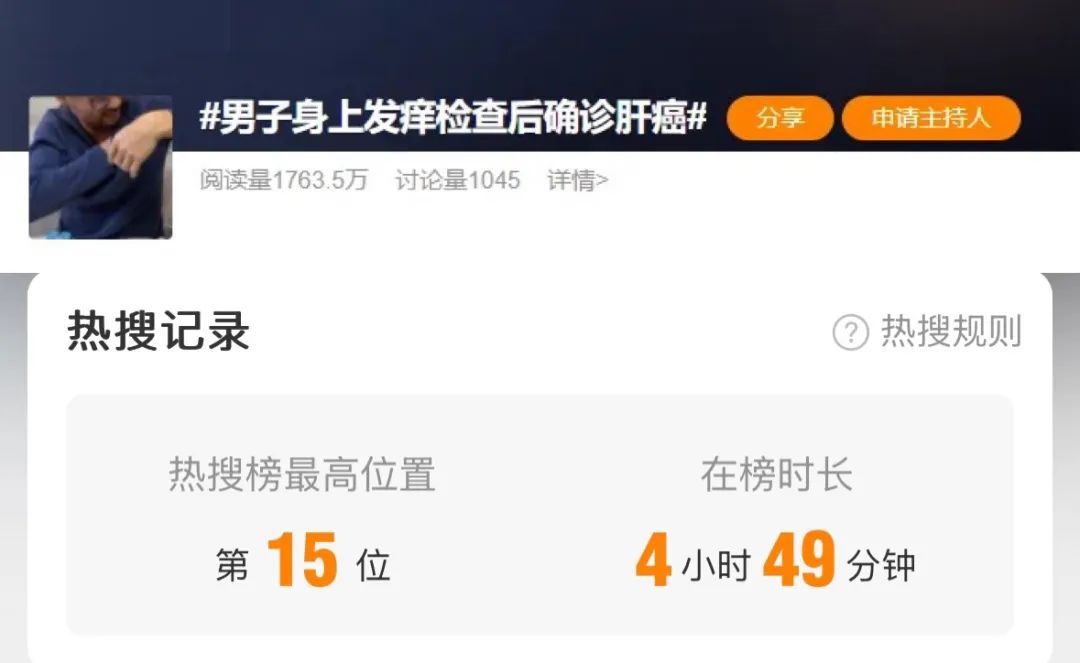 3月30日,话题#男子身上发痒 检查后确诊肝癌#登上社交平台热搜,引发网友热议。
