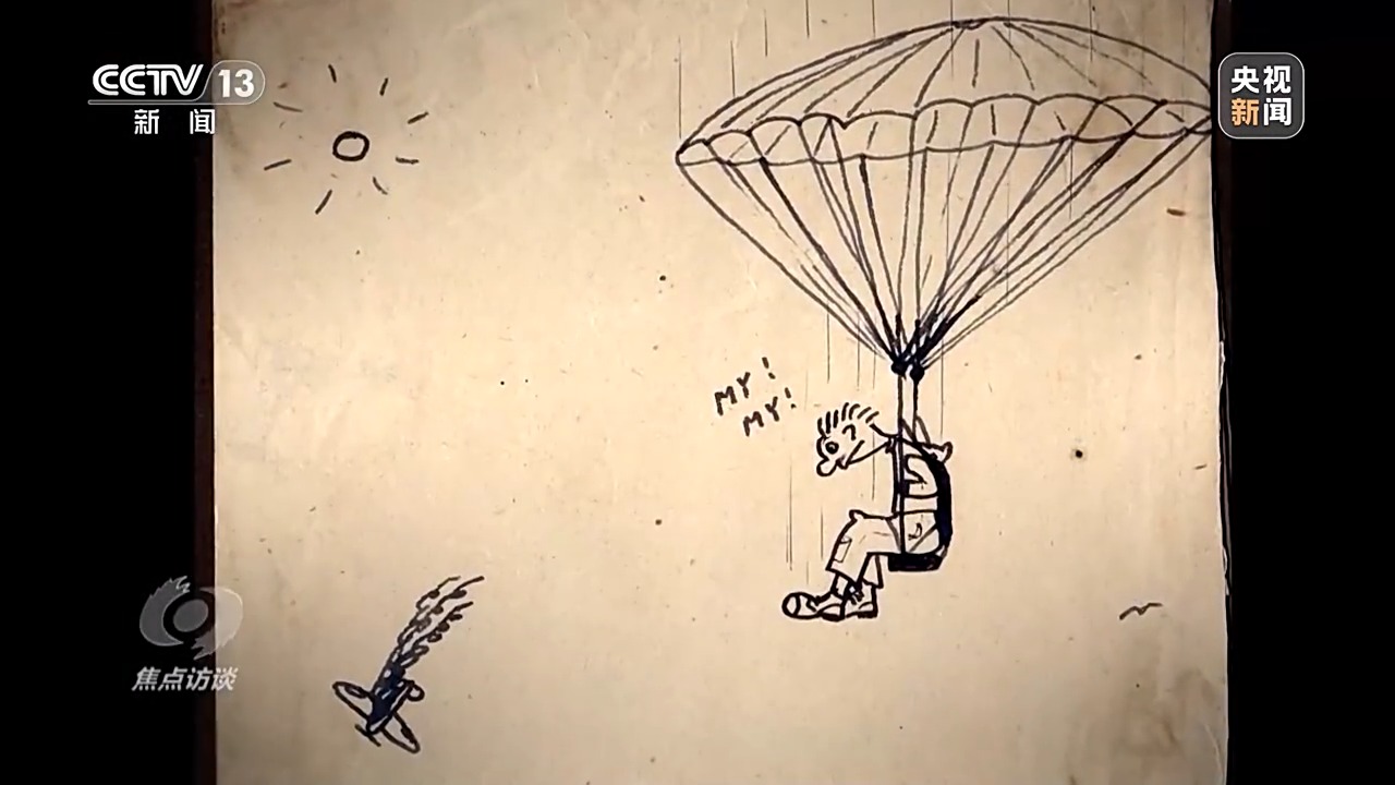 东江纵队港九独立大队战士后人 江山:还好,一阵南风吹过来,给他吹到了启德机场北边的观音山上,降落伞一落以后,他把伞绳一割,脱掉以后,拔腿就往山里跑,飞机燃烧的时候他的腿烧伤了,越跑就越跑不动,旁边有一个小孩儿搀着他一起跑。