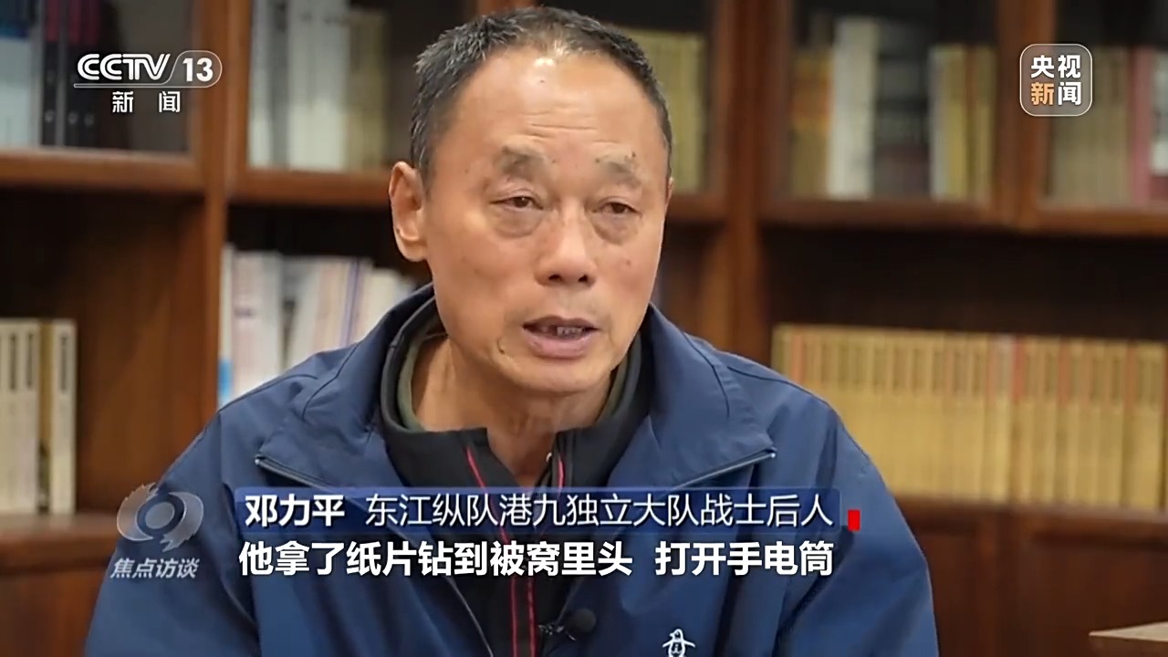 东江纵队港九独立大队战士后人 邓力平:我父亲给了他一张纸,他拿了纸片钻到被窝里头,打开手电筒,一看那张纸是一份地图,等于领着他逃亡的地图,地图上面写着“先生来吧,我带你回家”。