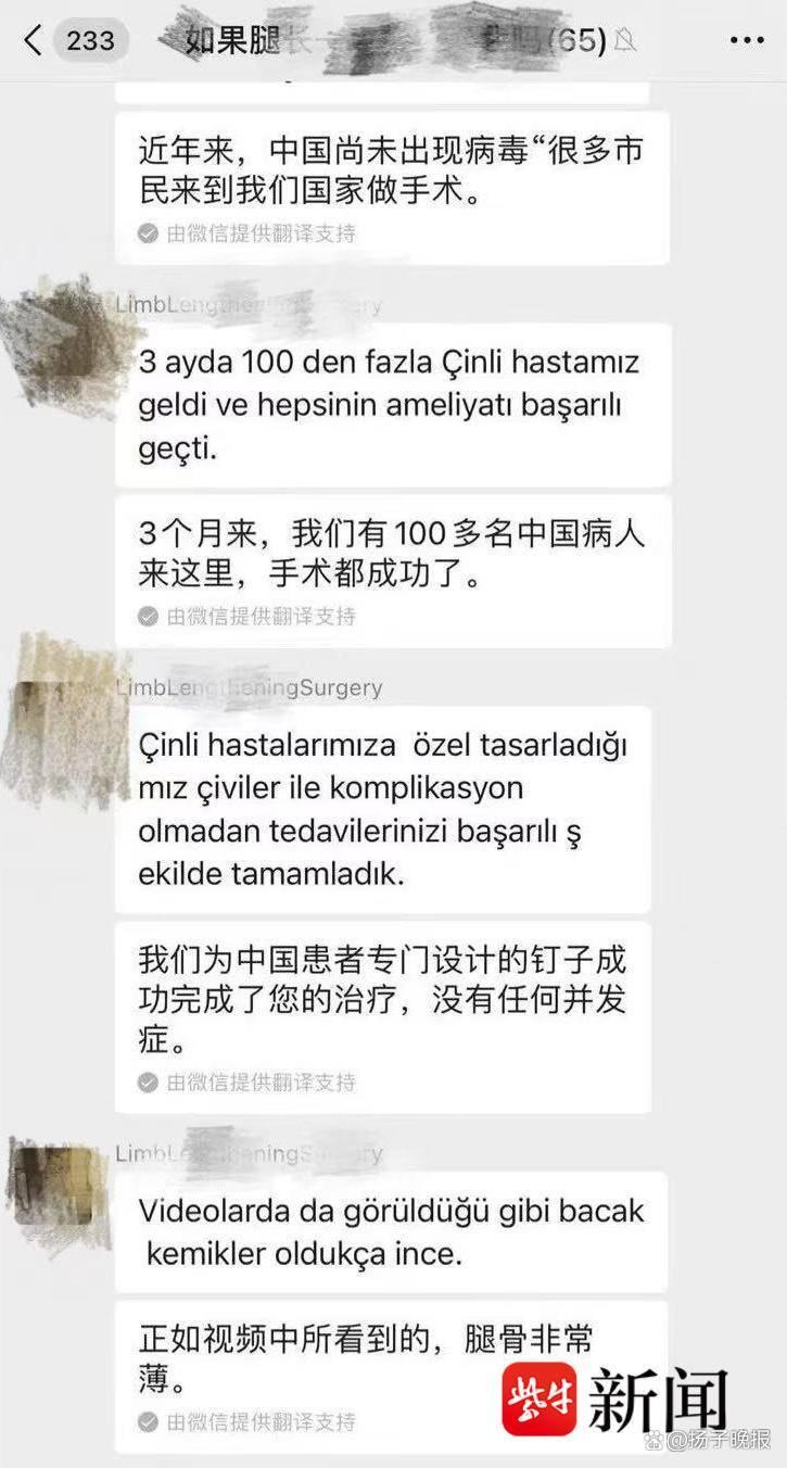 “如果没有加入术前群,如果没有看到这么多人去做手术,我不会有这么大的胆子跑到土耳其这个陌生的国家去做手术的。” 小梦告诉记者,她所了解的术前群规模庞大,总共十几个群。她提供的一张与土耳其机构工作人员的聊天截图显示,该机构声称三个月内已为100多位中国人成功实施了手术。