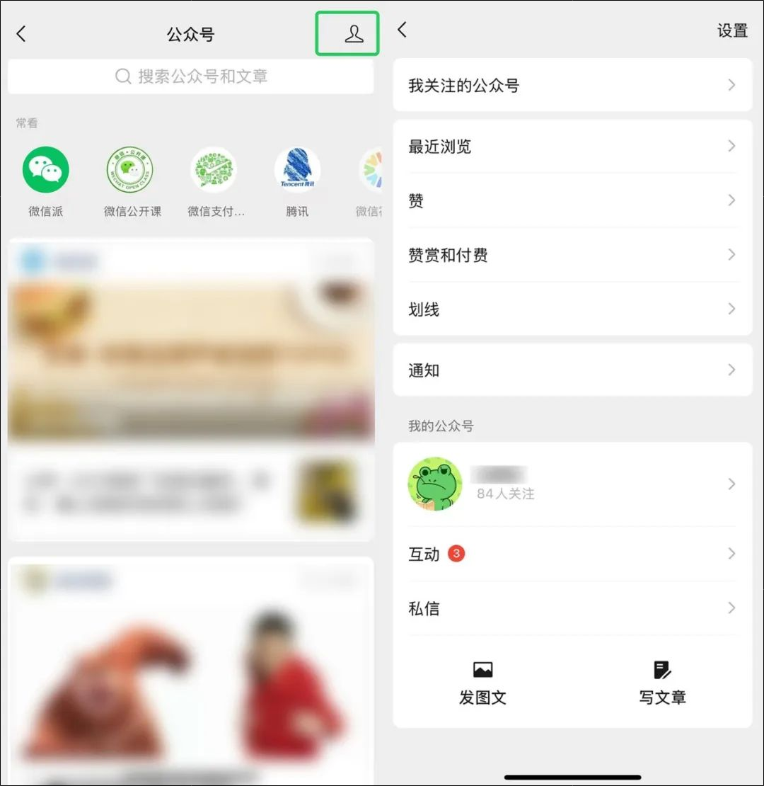 已拥有个人公众号的,进入“微信-公众号-右上角(个人中心)”,管理员能直接用手机撰写发布公众号图文/文章,回复留言私信,内容创作更即兴。