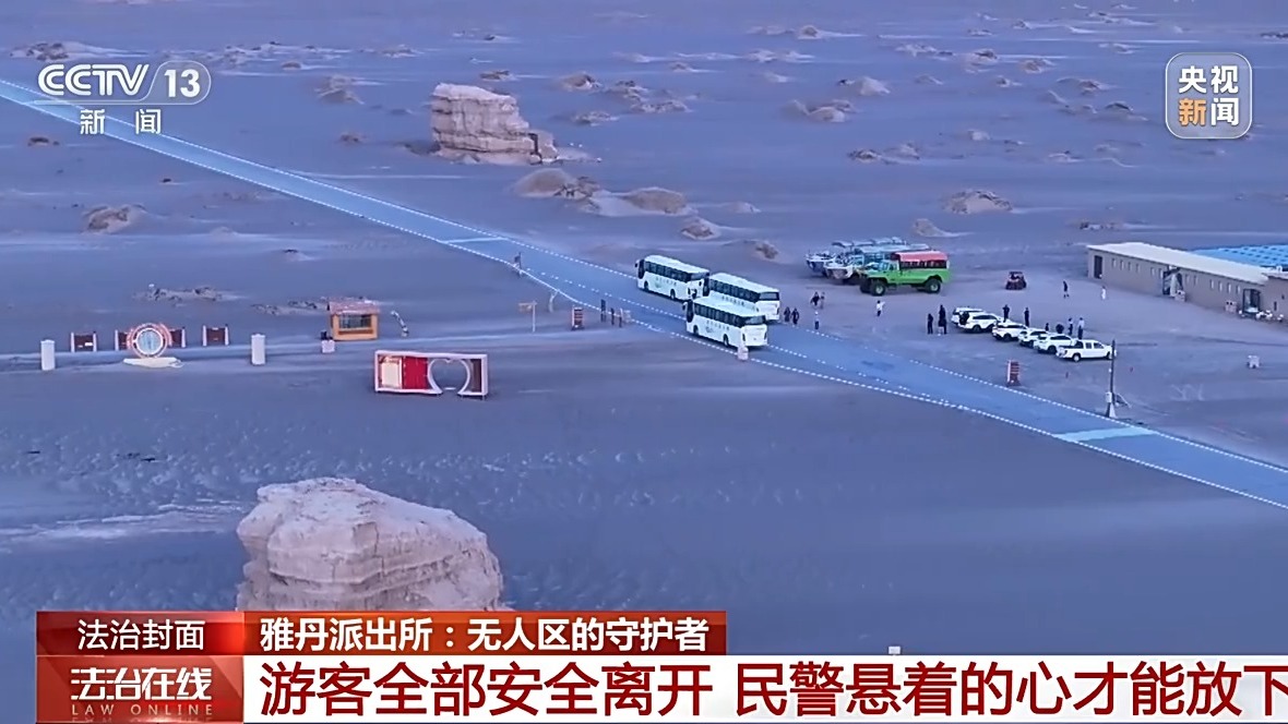 从派出所所在的位置往里走,就是雅丹国家地质公园的核心区域,300多平方公里范围内,遍地的雅丹地貌有的单独成形,精妙奇幻;有的纵横交错,蔚为壮观。特别是在每天落日的时候,都会有大量游客来到这里记录下夕阳中的美景,而这时也是派出所的民警们最忙的时候,因为所长徐海瑞会带着大家一直在景区内分组巡逻。