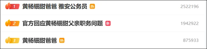 5月14日下午,多个消息称,黄杨钿甜父亲为四川雅安公务员,质疑其高额消费不合理。5月15日,黄杨钿甜相关信息多次冲上热搜。
