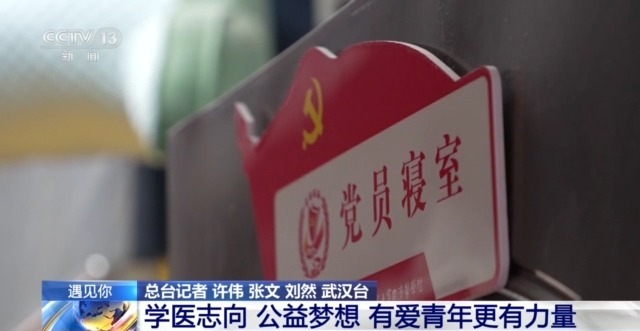 如果说儿时想要当医生的梦想是一颗种子,如今,它早已在万泽洋的内心生根发芽,正努力成长为一棵大树。在他寝室的门上,挂着“党员寝室”的牌子。万泽洋和另外三名室友全都是党员,他们也是学校青年志愿者协会的成员。
