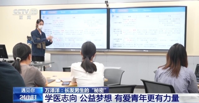 万泽洋所在的医学院与医院仅“一门之隔”,他和同学们经常轮流去医院做志愿者,这也成了他们的实践课堂。